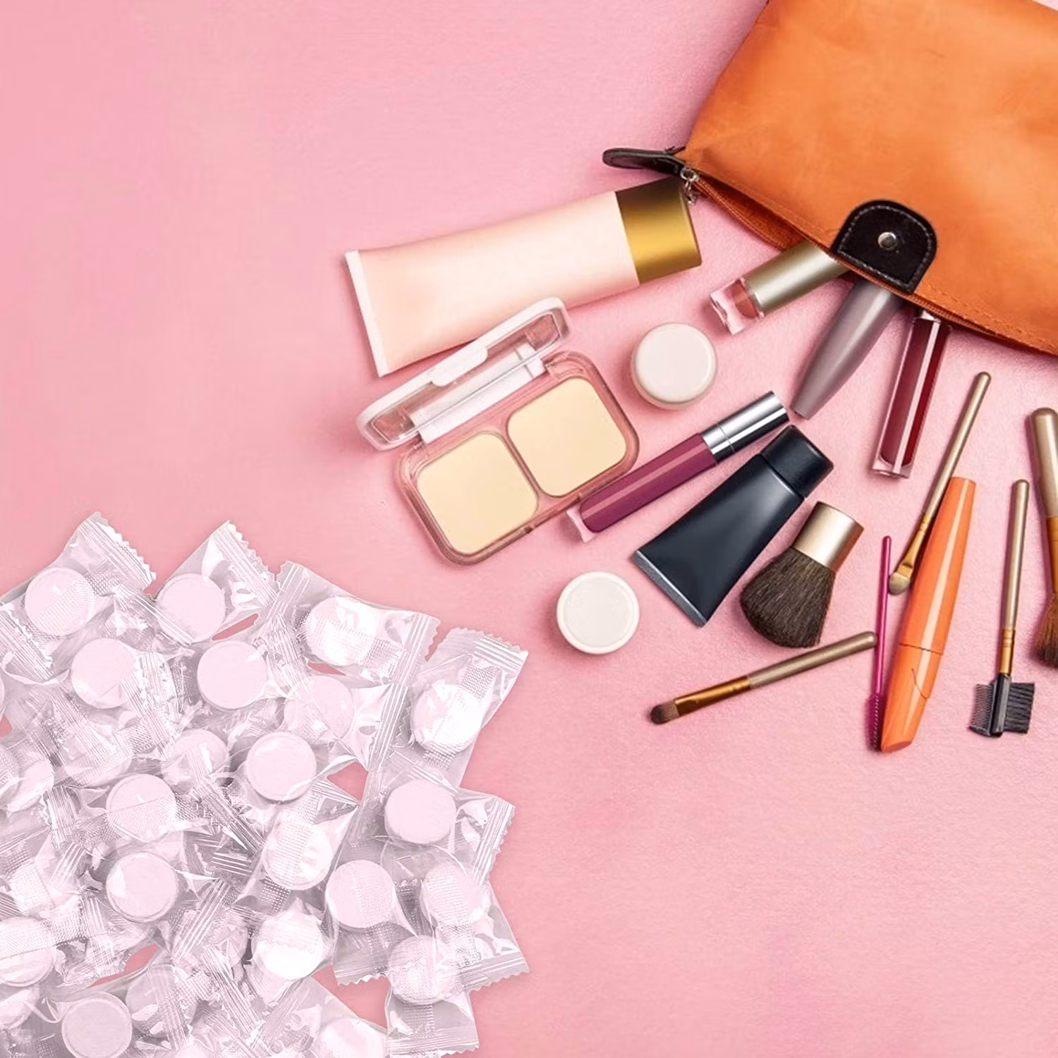 PREMIUMKVALITET: Den minikomprimerade handduken är tillverkad av högkvalitativt icke-vävt bomullslinne, som är mjukt och miljövänligt, säkert och bekvämt att använda.